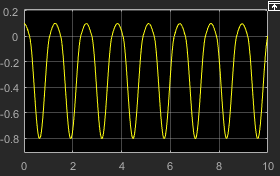 Запустите моделирование и откройте блок «Scope». На графике показано положение опорной рамки переменной массы. Следует отметить, что частота колебаний и амплитуда остаются постоянными во время моделирования.
