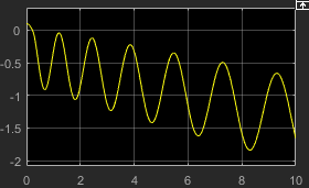 Запустите моделирование и откройте блок «Scope». График положения показывает переменную частоту и амплитуду колебаний. Увеличение массы вызывает увеличение частоты колебаний и уменьшение амплитуды.