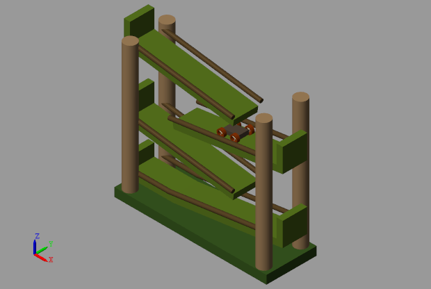 Для моделирования модели на вкладке Моделирование (Simulation) щелкните Выполнить (Run). В обозревателе Mechanics можно увидеть бампер, катящийся по нескольким пандусам.
