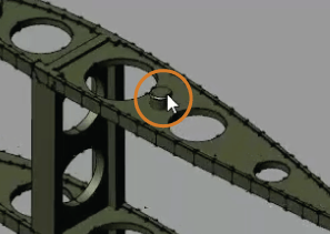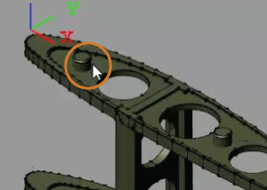 На панели визуализации увеличьте изображение верхней части клапана и выберите верхнюю поверхность крайнего правого цилиндрического выступа, как показано на рисунке. Панель визуализации подсвечивает выбранную поверхность и отображает ее вектор нормали.
