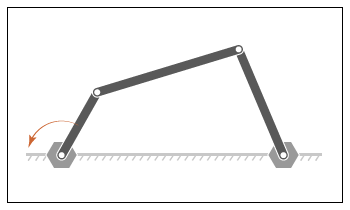 В этом учебном пособии с помощью блока «Поворотное соединение» задается изменяющийся во времени угол поворота кривошипа четырехлинейного звена. Затем, во время моделирования, вы измеряете крутящий момент в том же соединении, что и заданное движение.