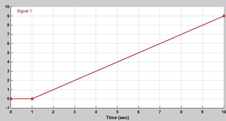Этот сигнал соответствует постоянной угловой скорости 1 рад/с от t = 1 с.