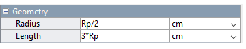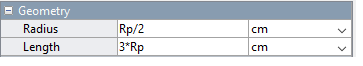 Параметры геометрии по умолчанию развернуты. Блок цилиндрического тела использует форму с соответствующими размерами (радиус, длина), параметризованными в терминах переменных MATLAB (Rp, Lp). Все переменные определяются численно в маске подсистемы.