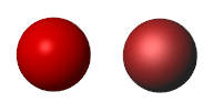 Параметризация визуальных свойств выбирается с помощью параметра блока «Графика» > «Визуальные свойства». Рисунок контрастирует с двумя параметризациями. Слева - твердое тело с Simple визуальные свойства. Справа то же твердое тело с Advanced визуальные свойства - включая параметры зеркального цвета и блеска, которые придают твердому телу небольшой металлический блеск.