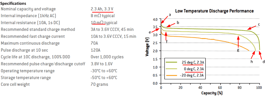Эти параметры получены на основании технических спецификаций для Литий-ионной температурно-зависимой модели батареи A123.