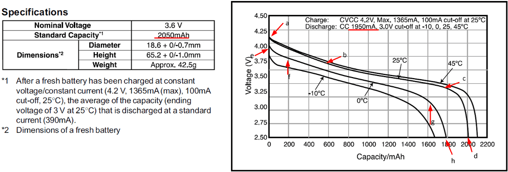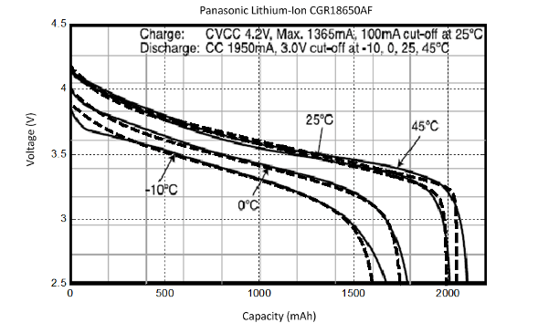 Такой же подход к извлечению параметров применяется к литий-ионным CGR18650AF Panasonic с этими спецификациями.