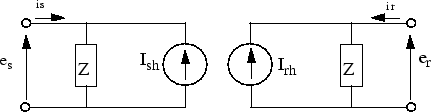В строке без потерь два источника тока Иш и Ирх вычисляются как:
