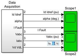 Dimension - Индекс выбранного сигналаУказывает индекс сигнала, заданный параметром Signal. Например, параметр Dimension позволяет выбрать измерение Ib трехфазного сигнала, подключенного ко второму входу Scope2 блока.