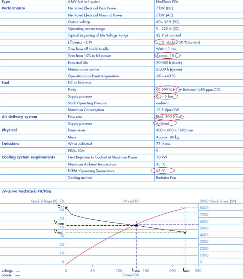 Ниже приведена процедура извлечения параметров из спецификации производителя батареи топливных элементов. В этом примере используется спецификация NetStack PS6 от NetStack:
