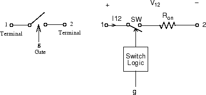Блок идеального коммутатора не соответствует конкретному физическому устройству. При использовании с соответствующей логикой переключения его можно использовать для моделирования упрощенных полупроводниковых устройств, таких как ГТО или МОП-транзистор, или даже силовой выключатель с резкой тока. Переключатель моделируется как резистор Ron последовательно с переключателем, управляемым сигналом логического затвора g.