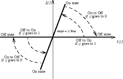 Проводит любой двунаправленный ток с квазинулевым падением напряжения, когда g > 0