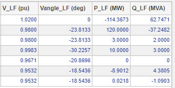 Чтобы решить поток нагрузки, щелкните Вычислить (Compute). Напряжения и углы шины отображаются в столбцах V_LF (pu) и Vangle_LF (deg) таблицы.