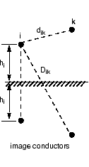 Само- и взаимные индуктивности вычисляются следующим образом. Поправочные термины ΔL игнорируются, поскольку сопротивление земли равно нулю.