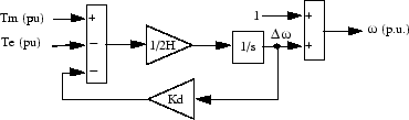 Коэффициент демпфирования Kd моделирует эффект демпферных обмоток, обычно используемых в синхронных машинах. Когда машина подключена к бесконечной сети (нулевой импеданс), изменение угла дельта (δ) мощности машины, возникающее в результате изменения механической мощности (Pm), может быть аппроксимировано следующей передаточной функцией второго порядка: