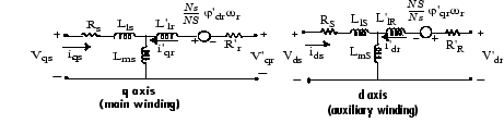 | V 'qr = R' ri 'qr + d' qr/dt - (Ns/NS) | start' qr = L 'ri' qr + Lmsiqs | |