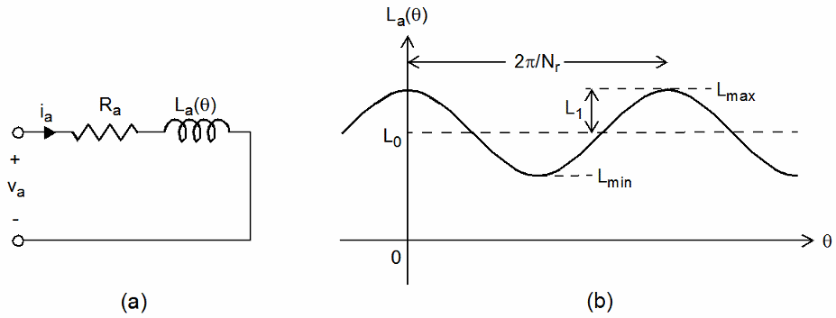 В этой модели, Ra и La (λ), соответственно, представляют сопротивление и индуктивность обмотки фазы А. Индуктивность обмотки изменяется в зависимости от положения ротора: