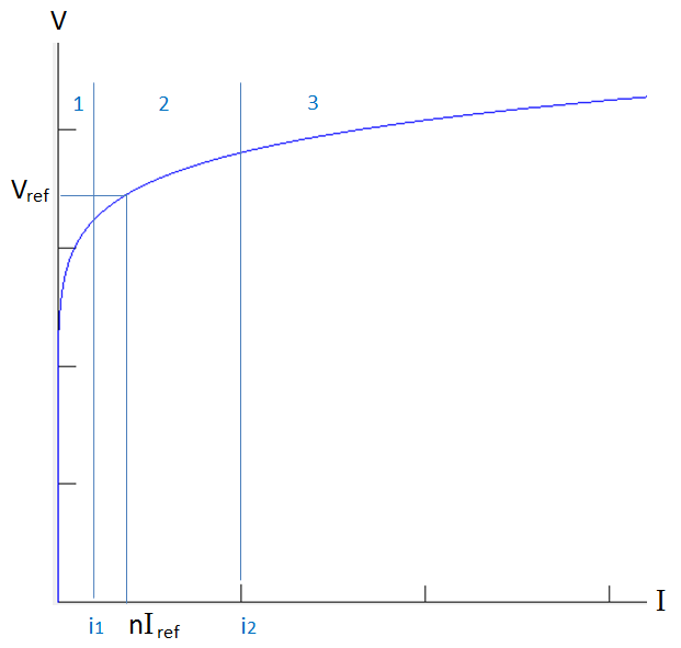 Числа 1, 2, и 3 определите три сегмента (или экспоненциальные функции, определяющие модель). Буква n - количество столбцов диска металл-оксид.