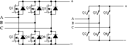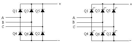 Нумерация устройств отличается, если силовые электронные устройства коммутируются естественным образом или принудительно коммутируются. Для естественно коммутируемого трехфазного преобразователя (диода и тиристора) нумерация следует естественному порядку коммутации: