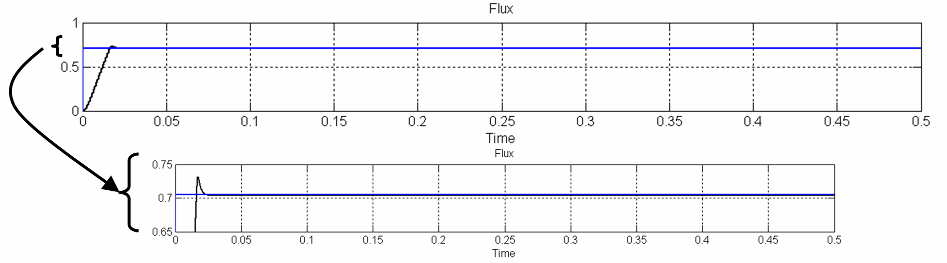 Откройте блок «Scope» и проверьте сигнал потока. Следует отметить, что погрешность установившегося состояния высока.