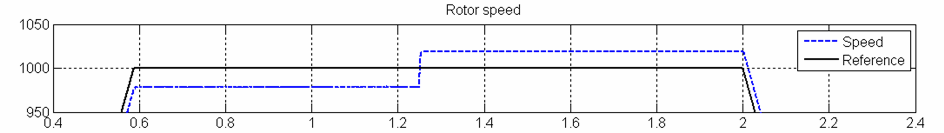 Проверьте сигнал скорости на блоке Scope. Погрешность установившегося состояния высока, и время отклика неприемлемо.