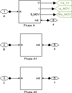 Подсистема Series Compensation1/PhaseA/Подача энергии и разрывов