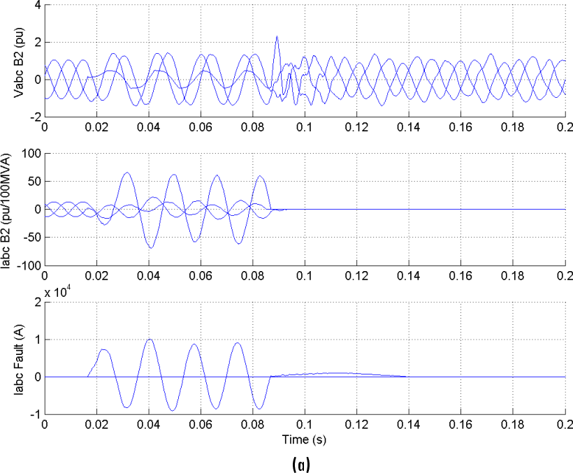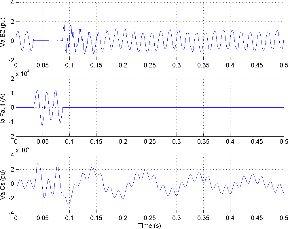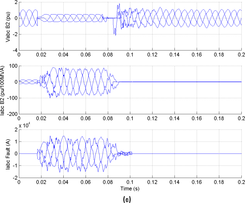 Конфигурация автоматических выключателей подстанции обычно позволяет устранить неисправность шины без потери линий или трансформаторов. Теперь вы изменяете case1 модель для выполнения трехцикльного трехфазного замыкания на землю при B2 шины: