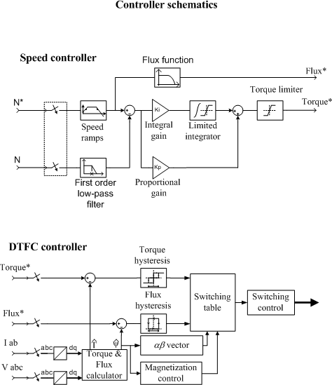 Что касается контроллера DTC, обрезать не так много. Параметрами являются полоса частот крутящего момента и потока, начальный машинный поток, максимальная частота переключения и время дискретизации контроллера DTC. Все эти параметры уже обрезаны и, как правило, не должны изменяться.