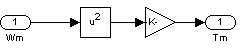 Вход Tm блока AC4 представляет крутящий момент нагрузки, приложенный к валу асинхронного двигателя. В этом случае крутящий момент нагрузки противостоит вентилятору. Этот тип крутящего момента обычно является квадратичной функцией скорости, как показано в уравнении 1: