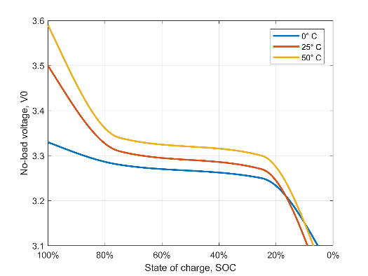 v0 - напряжение без нагрузки батареи. Задайте сетку значений поиска с помощью параметра No-load voltage, V0 (SOC, T), если параметры табулируются по температуре, или No-load voltage, V0 (SOC) в противном случае.
