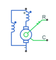 Блок «Составной двигатель» представляет электрические и крутящие характеристики составного двигателя. На этом рисунке показана эквивалентная схема двигателя с коротким шунтом: