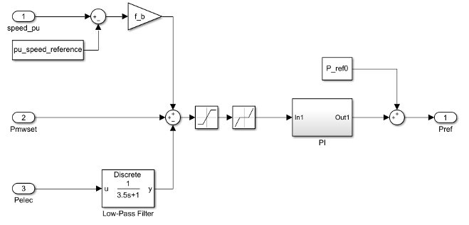 Диспетчер блок LCFB1 моделирует турбину модели LCFB1, загружает контроллер. Этот регулятор нагрузки можно использовать с любой моделью регулятора турбины, например с блоками регулятора типа 1 или регулятора типа 3.