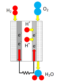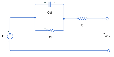 Батарея топливных элементов содержит несколько последовательно соединенных топливных элементов. На этом рисунке показана эквивалентная схема одного топливного элемента.
