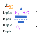 Блок топливных элементов моделирует топливный элемент, который преобразует химическую энергию водорода в электрическую энергию.