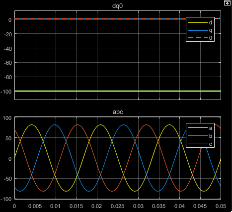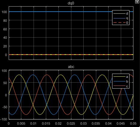Блок обратного преобразования парков преобразует прямые, квадратурные и нулевые компоненты временной области во вращающемся опорном кадре в компоненты трехфазной системы в abc опорном кадре. Блок может сохранять активную и реактивную мощности с мощностями системы во вращающейся системе отсчета, реализуя инвариантную версию преобразования Парка. Для сбалансированной системы нулевая составляющая равна нулю.