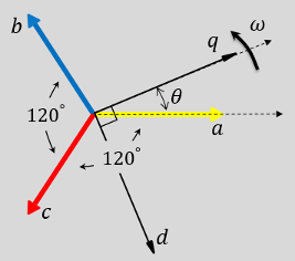 a, b и c - компоненты трехфазной системы в опорном кадре abc.