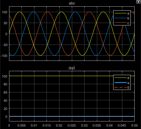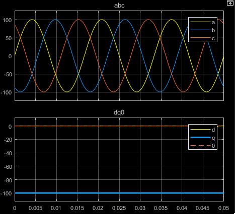 Блок Park Transform преобразует компоненты временной области трехфазной системы в опорном кадре abc в прямые, квадратурные и нулевые компоненты во вращающемся опорном кадре. Блок может сохранять активные и реактивные мощности с мощностями системы в опорном кадре abc, реализуя инвариантную версию преобразования Парка. Для сбалансированной системы нулевая составляющая равна нулю.