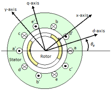 Когда Ld = Lq, и когда токи во всех пяти фазах сбалансированы, то суммарный крутящий момент T задается: