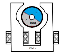 На рисунке показана конструкция двигателя с одной полюсной парой на роторе. Однофазные PMSM не являются самозапускающимися, если воздушный зазор не асимметричен.