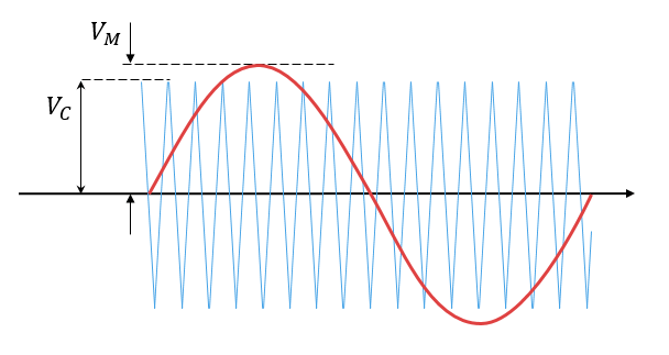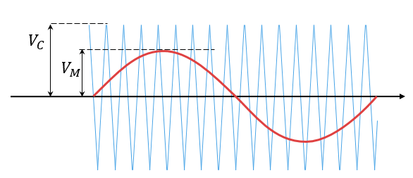 Для нормальной стационарной работы, 0 < m ≤1. Если переходный процесс, такой как увеличение нагрузки, приводит к тому, что амплитуда Vm превышает амплитуду Vc, перемодуляция (m > 1) происходит