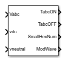 Блок синхронизации и генератора сигналов ШИМ (трехфазный, трехуровневый) управляет поведением переключения для трехфазного трехуровневого преобразователя мощности. Блок вычисляет время включения и отключения и модулирующие волны на основе этих входов блока: