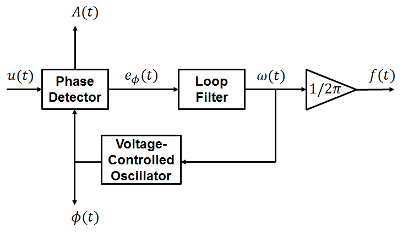 Генератор, управляемый напряжением, интегрирует угловую скорость для получения фазовой оценки, которую он посылает фазовому детектору для сравнения.