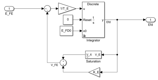 Подсистема интегратора интегрирует разницу между EFE и VFE для формирования выходного напряжения поля Efd. TE - постоянная времени для этого процесса.