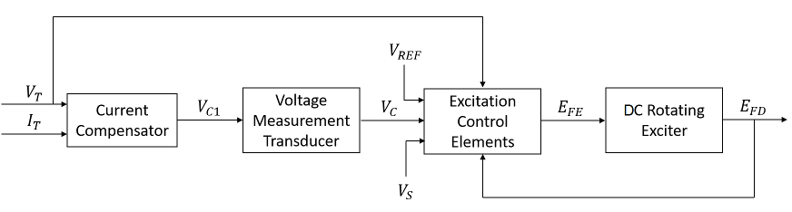 На этой диаграмме показана общая структура модели системы возбуждения DC2C: