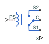 Соединение C-S1 или C-S2 замкнуто, неисправность не вступает в силу, если реле не находится под напряжением или не обесточено, а замкнутое соединение разорвано. Если соединение разорвано, реле становится разомкнутым и остается разомкнутым до конца моделирования.