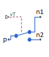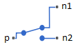 Когда коммутатор открыт, порт p подключается к порту n1.
