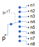 Если значение vT находится в диапазоне от одного до числа портов выброса, значение сигнала округляется до ближайшего целого числа. Затем полюс подключается к метательному порту, который соответствует целочисленному значению.