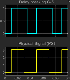 После начала моделирования, если PS поднимается выше, блок переходит из обесточенного состояния в состояние под напряжением, и соединение C-S замыкается после задержки, указанной в поле Time-to-make C-S.