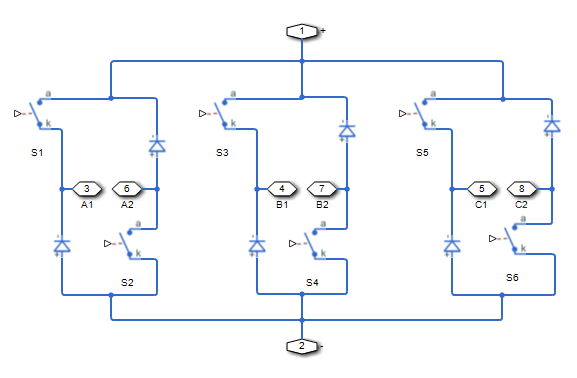 Для получения управляющих сигналов для трех фаз блок затем умножает рабочий цикл на сигналы коммутации. Полученные три управляющих сигнала нормализуются в интервале [0, 1].