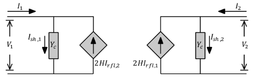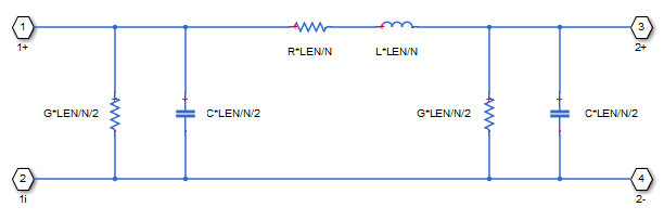 Параметризация скошенного параметра использует N копий вышеупомянутой модели сегмента, соединенных последовательно. Параметры определены для модели линии передачи L-образного сечения. В отличие от модели L-сечения, модель pi-сечения симметрична.