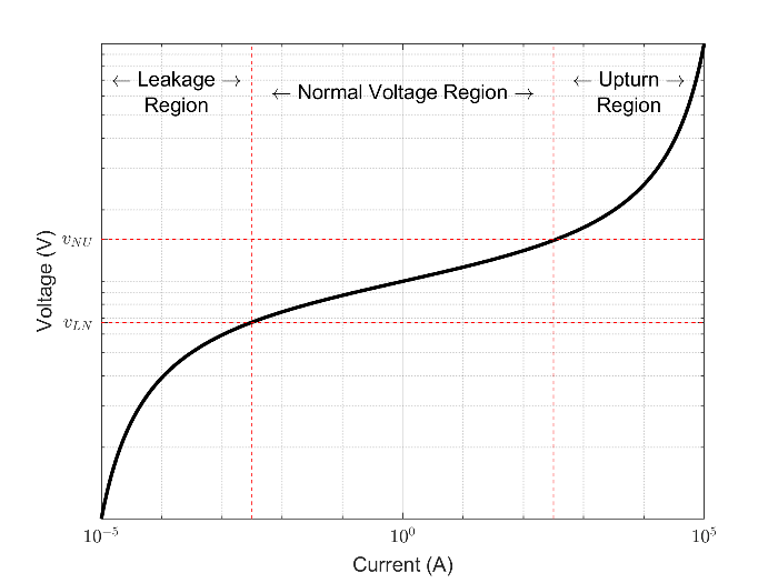 vLN и vNU являются пороговыми напряжениями, соответствующими точкам перехода "утечка - нормальное" и "нормальное" повышение ". Установите эти значения, используя параметры перехода «Утечка» в нормальное напряжение и «Нормальное» в восходящее напряжение соответственно.